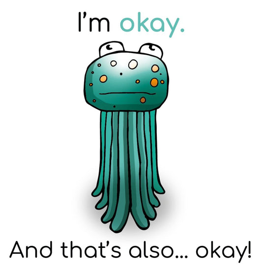 "I'm okay. And that's also... okay!" Round Children's Emotions Sticker 60mm x 60mm