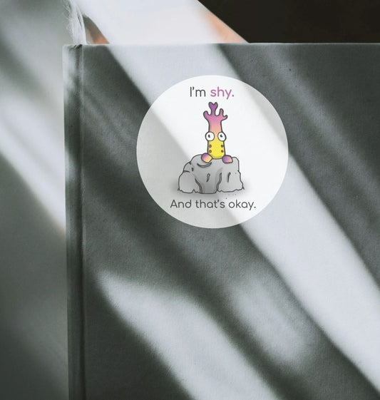 "I'm shy. And that's okay!" Round Children's Emotions Sticker 60mm x 60mm