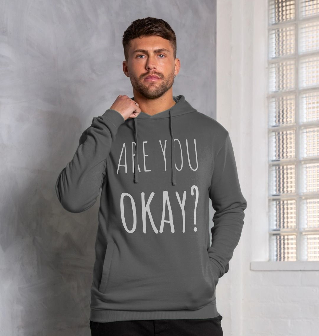 Designed by Chris Dixon, author of the That's Okay mental health and youth support book range, to raise awareness and tackle mental health stigma through mental health clothing - Are You Okay Men's Hoodie.