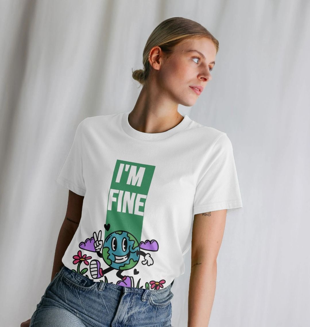 Certified Organic Cotton T-shirt, 155g/m2. Wash cool, hang dry. GM free. Not tested on animals. Does not contain animal-derived products. Printed in the UK with low waste printing tech. Made in a renewable energy powered factory audited for a wide range of social and sustainability criteria.