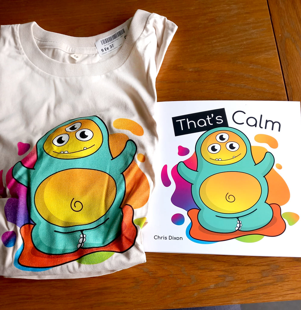 That's Calm Guided Mediation Book and T-Shirt Bundle. Get a t-shirt for both you and your child (only available in white in the bundle) and get the digital bundle worth £16.96 for free. The digital bundle includes the That's Calm audio book and background music too - you will be emailed this and be able to download after payment.
